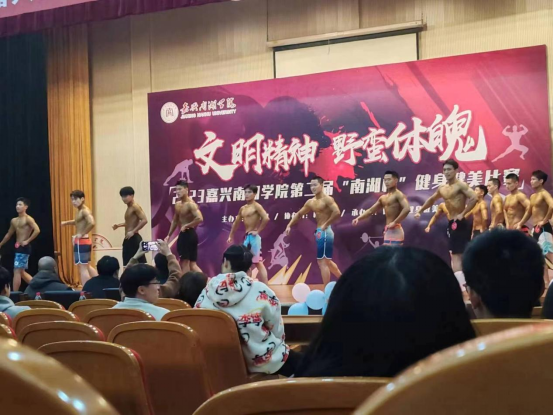 为响应全民健身号召,激发广大青年的运动热情,提倡积极向上的健康生活理念,让更多的人参与到运动健身中来,2023年11月12日晚上18:30,嘉兴南湖学院第二届“南湖杯”健身健美比赛在第二报告厅顺利举行。